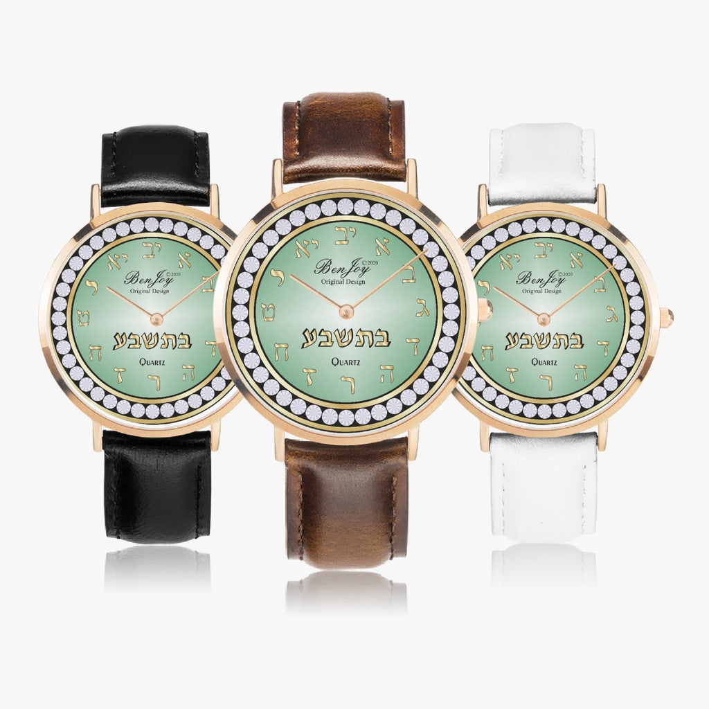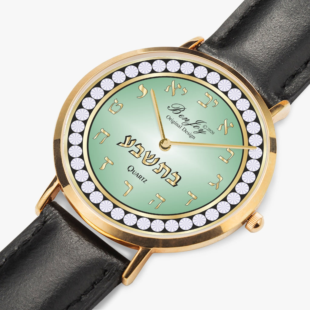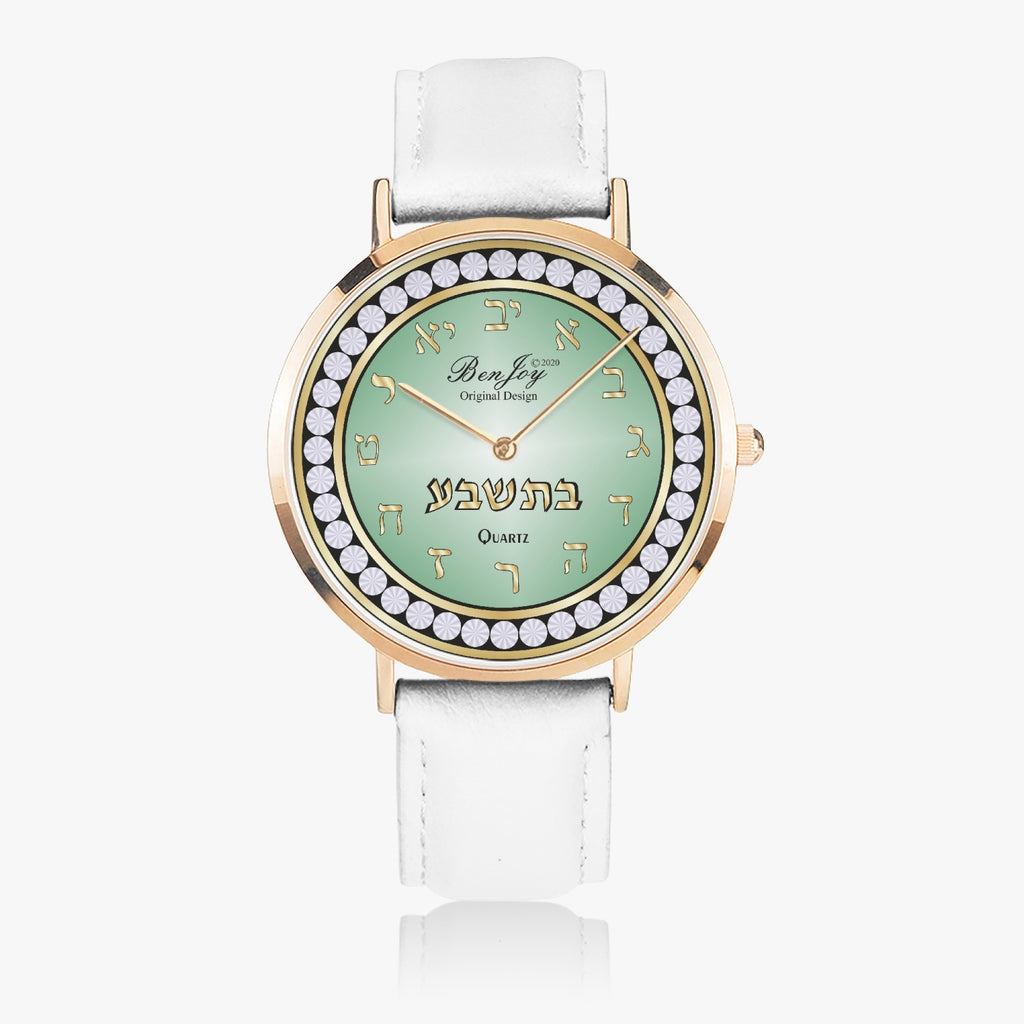 Judaica (Name) Ultra-Thin Leather Strap Watch (Rose Gold) By BenJoy