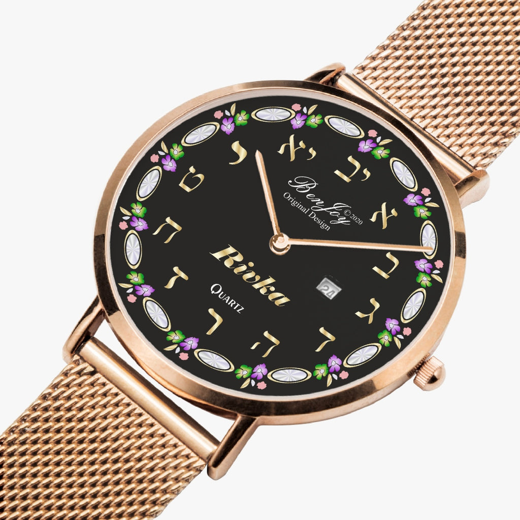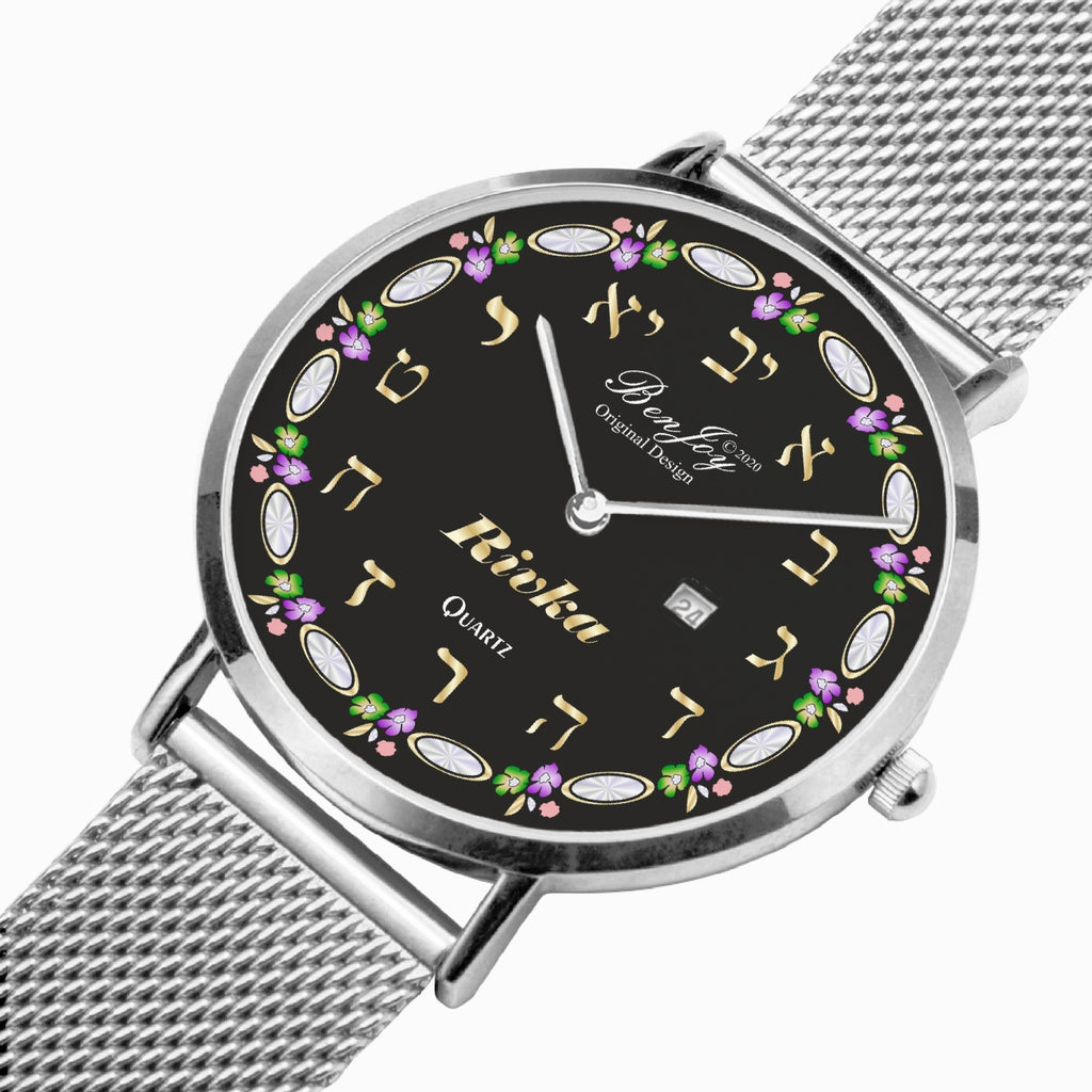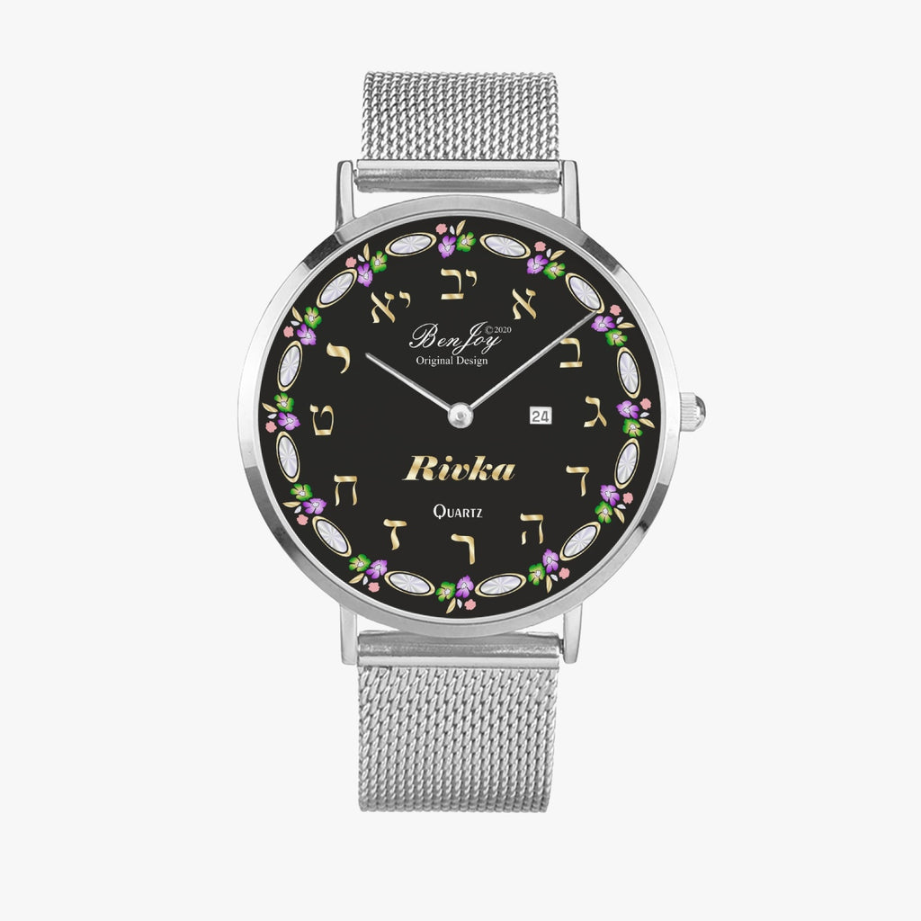 Judaica Stainless Steel Perpetual Calendar "Name" Quartz Watch By BenJoy