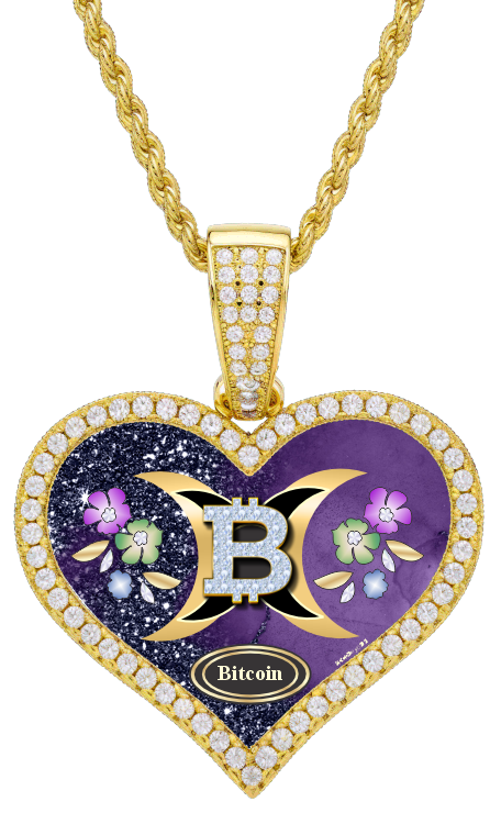 Bitcoin Heart Necklace – CZ Stone Finish).